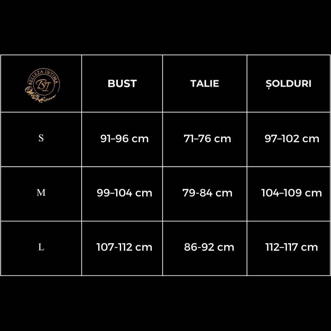 Dacă aveți nevoie de ajutor în alegerea mărimii perfecte, vă rugăm să ne contactați la nr. 0732953387 sau pe chat-ul website-ului.