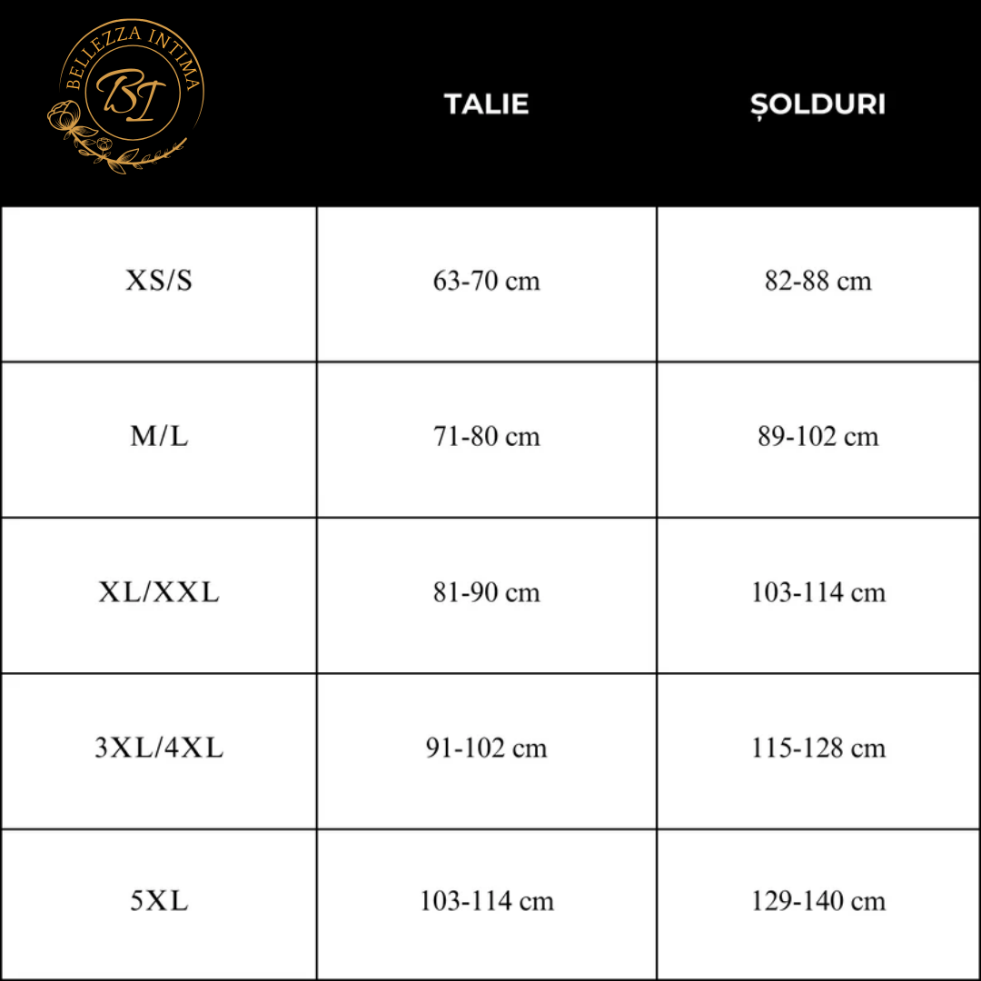 Dacă aveți nevoie de ajutor în alegerea mărimii perfecte, vă rugăm să ne contactați la nr. 0732953387 sau pe chat-ul website-ului.